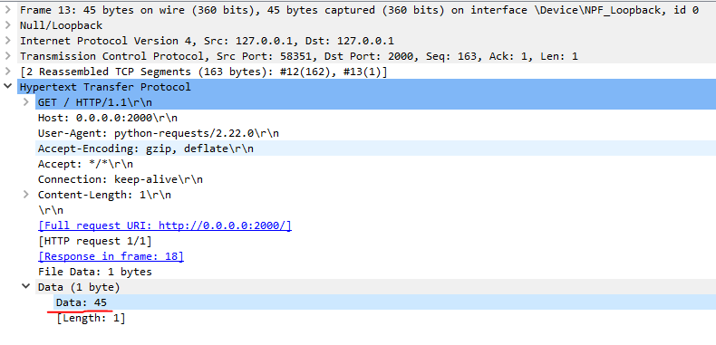 En analysant plus profondĂ©ment la requĂȘte GET, on remarque un transfert de data :