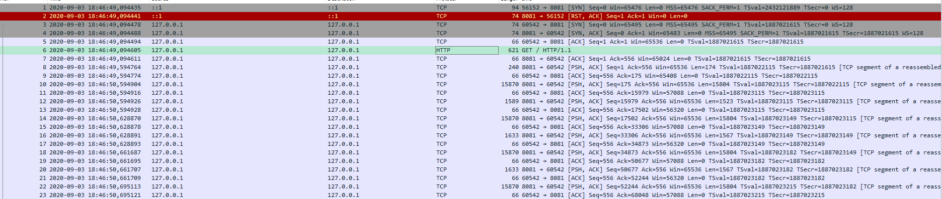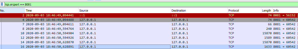 J'applique le filtre tcp.srcport == 8081